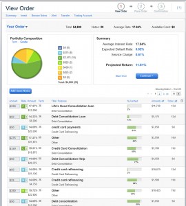 • The remaining $4800 went to the default Lending Club high-yield “Option 3 portfolio” of 29 loans of slightly higher average grade, projected yield 11.81%.