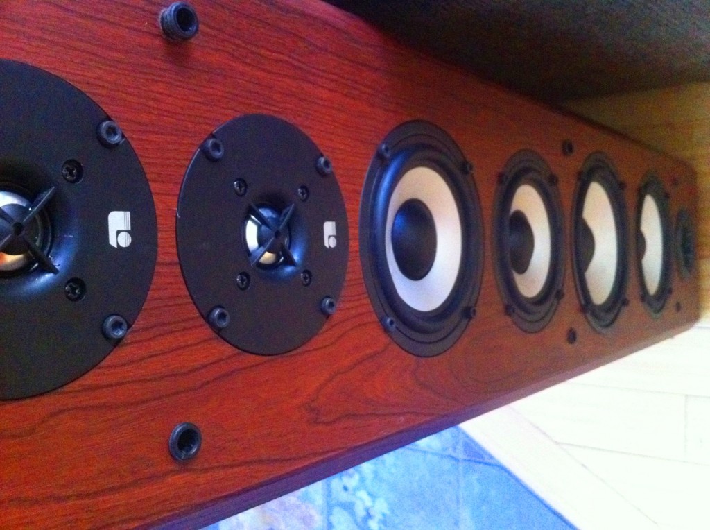 Pandora satisfies my desire for high quality audio as well. With the premium service, I get streaming at a bitrate of 192kb/sec using a compression method that is more advanced than MP3 (aacPlus). I run this sound stream out of the digital output on the back of my laptop, into my beefy Yamaha receiver, where the digital-to-analog conversion is done in a nice low-noise environment. It is amplified with a fantastic amount of clean power, and pumped out to the gorgeous row of woofers and tweeters depicted in the headline photo of this article. The end result is rich, detailed concerts in my living room, where the fine hairs of brushes hitting the drums strike out into the kitchen, and where the Bass tickles your buttocks at strategic moments. (I will admit that in the area of music reproduction, my frugality has broken down in earlier years. Someday when I lead a more minimalist life, this equipment will have to go.. but for now, the MMM Household rocks on.)