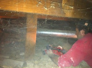 This is my friend about to jack up the house. Note the honeybadgerlike disregard for dirt and spiderwebs.