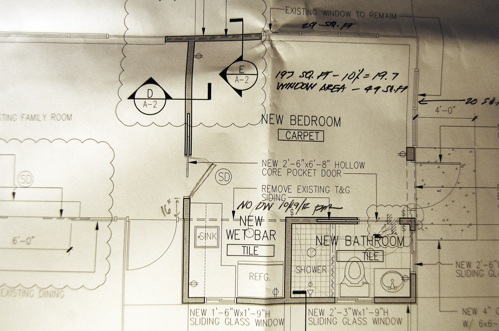 Yup – the homeowners here knew which guy to hire to draw the plans, and he apparently knew the secret handshake to get the permit quickly. The photograph I posted of the floorplan is from the official, city-stamped, 24×36 architectural sheet of the permit set.. so we are as official as can be here. No waiting required!