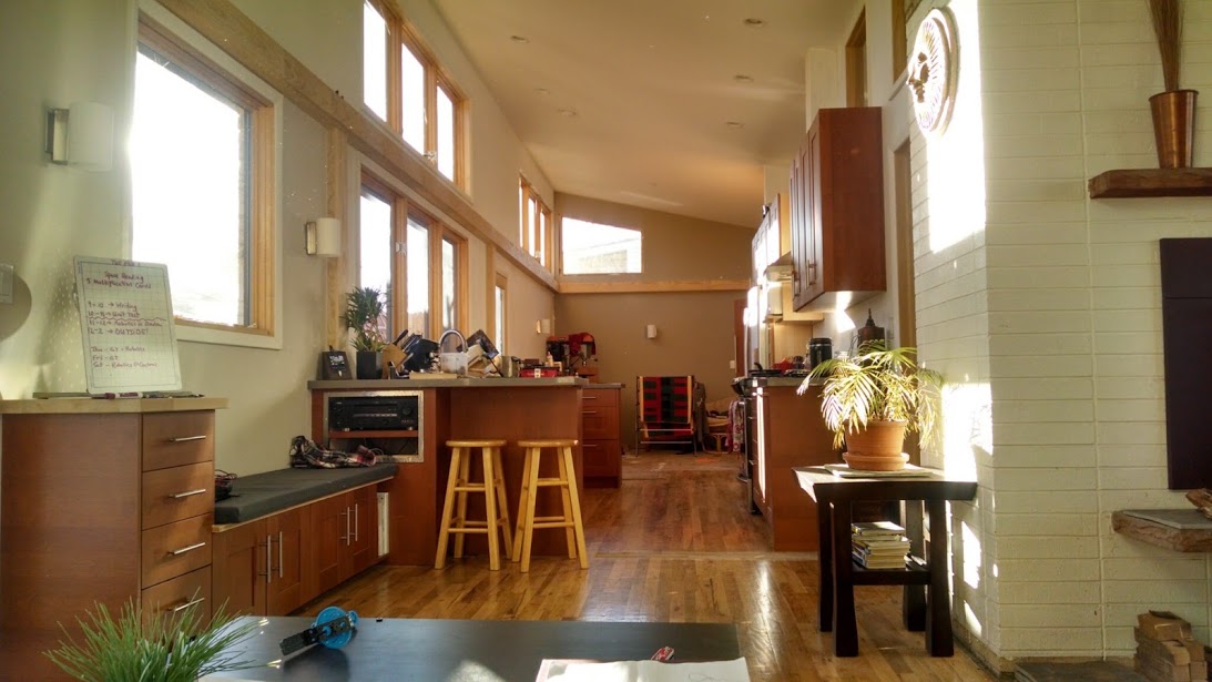 ..they’re off most of the time. This is because I built my windows into the side of the house that faces the sun, and keep those windows clean and free from curtains or other obstructions.  This is not always an easy thing to change in your current house, but is a great factor to consider when shopping for your next one. And there’s a much bigger benefit than lower electricity and heating bills: higher happiness. Having a bright, daylit living space will improve your mood, productivity, and entire outlook on life.