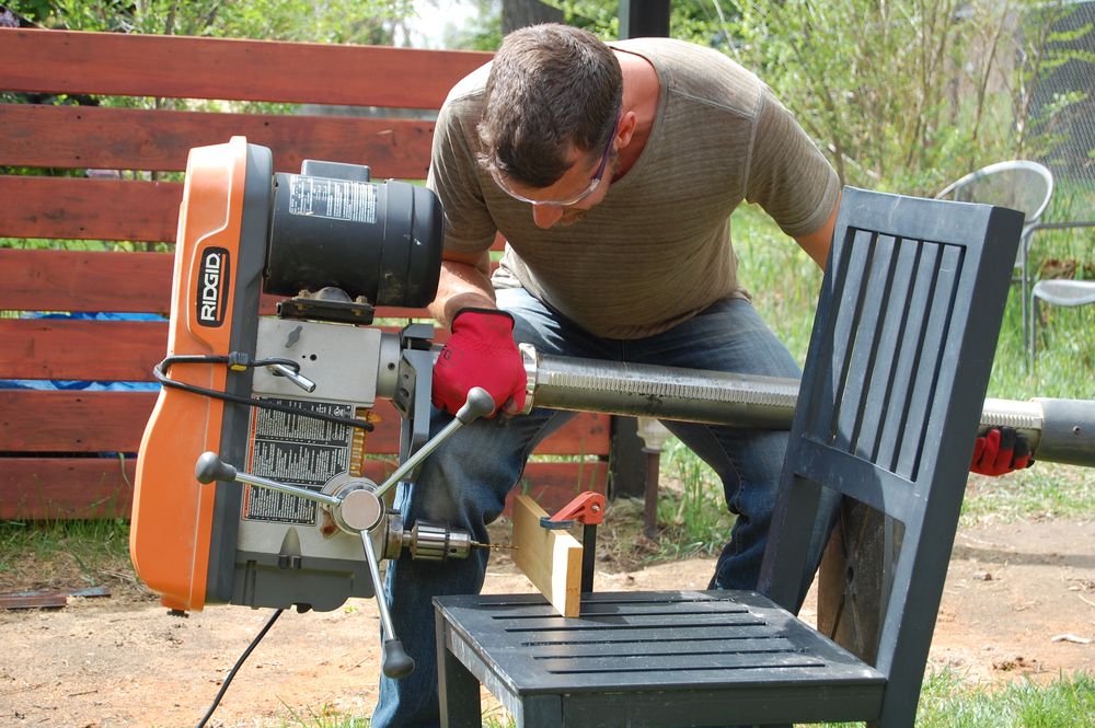 Then when things get really tough, I use the drill press. I have a Ridgid 15″ machine, which is the largest one I could find. With this thing, I can drill 50 half-inch holes through half-inch steel plate without breaking a sweat. On the downside, it weighs 163 pounds.