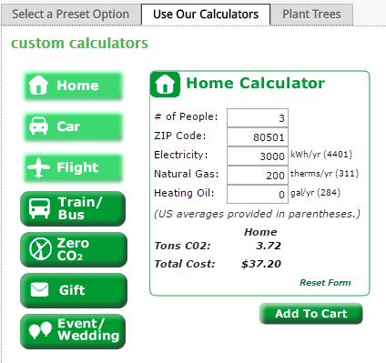 carbonfund_cartHeading to CarbonFund.org, I am filling up a shopping cart with the energy use from my household. Wow, that’s cheap, $37 to offset all my household carbon? When I add in 2000 miles in my Scion xA, there is another $5.