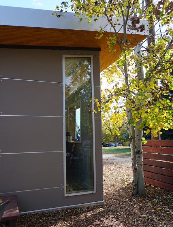To finish out a building like this, you need exterior siding and interior finish materials. This particular Studio Shed came with a very modern kit of painted cement board panels and aluminum accent pieces. The style was something I had never built before, so I feel I learned a few new tricks that I can use elsewhere. The downside is that it was incredibly labor intensive compared to other siding materials – lots of precision required to get it all to work out properly.