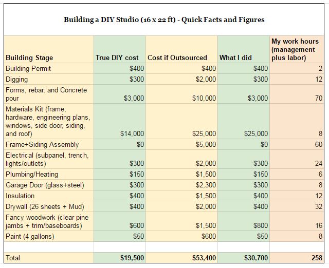 For the help from friends, I did a mixture of bartering time and paying certain people. But that part was such a small total I didn’t want to complicate the spreadsheet with those individual deals.