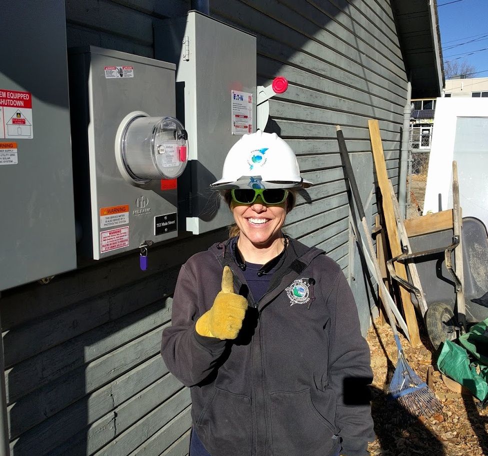 Begin with the end in mind. The amazing Kari Spotts (LPC’s lead of renewable power metering) helps me swap in a new dual-flow electric meter at the successful completion of this project.