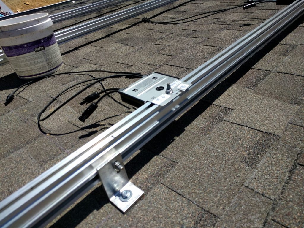 Grounding is Important: Using the supplied grounding screw terminals, connect all the rails together with bare 10AWG copper wire. From that last terminal, you’ll be running a length of the same size wire down to the inverter.