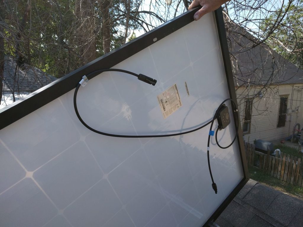 Nice work! I’ve been looking at panels on craigslist, and almost considered picking up an inverter you can plug in to an outlet so I could create a quick DIY portable setup – maybe around 1KW. These cheap inverters do have island protection, but poor efficiency and are not UL certified. I do still like the concept of system that can just be plugged in with an extension cord to a structure in the backyard…