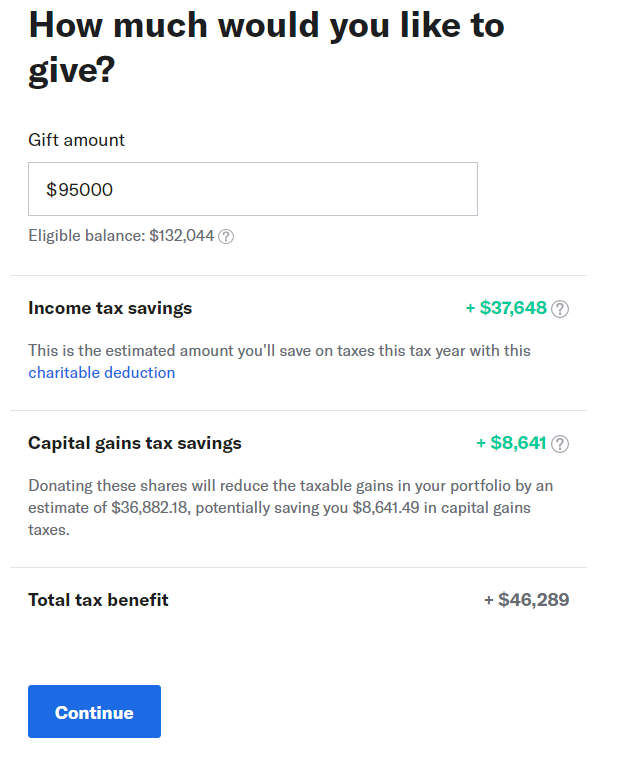 On top of this, donating appreciated shares from my Betterment account gives me the maximum tax benefit – on my 2020 taxes and all subsequent years. This further multiplies my money’s ability to do good. (And it’s a very easy way to give – overcoming one of the biggest hurdles to getting it done)