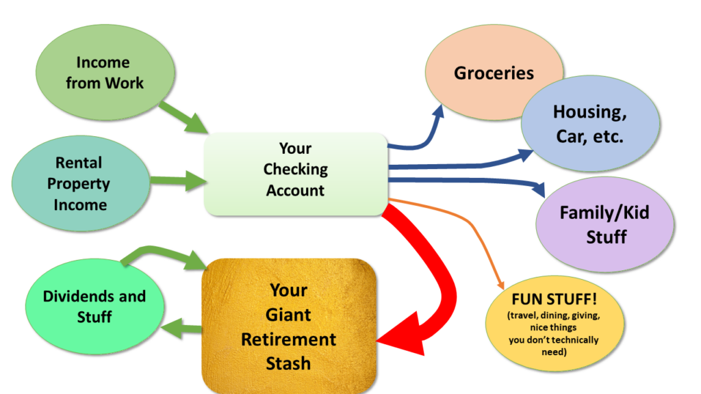 And whenever these people do get extra money, their first instinct is to stash it away on top of the already-too-big pile.  In diagram form, their money flow looks like this: