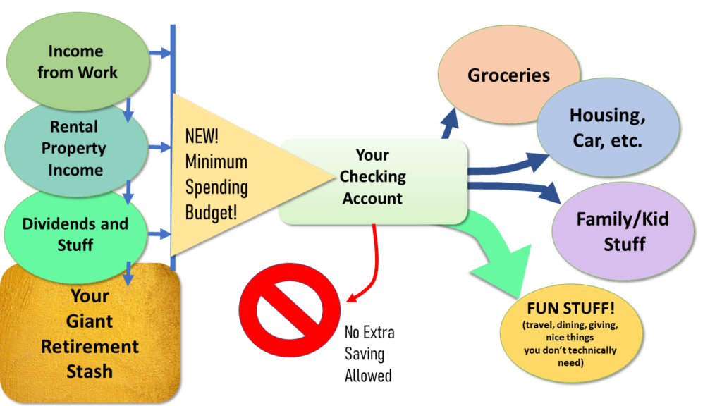 In this situation, you can still leave your dividends reinvesting but still give yourself a bigger, no-saving-allowed budget to get some practice being more relaxed and generous.  The real point here is to just stop sweating the details so you can have more fun.