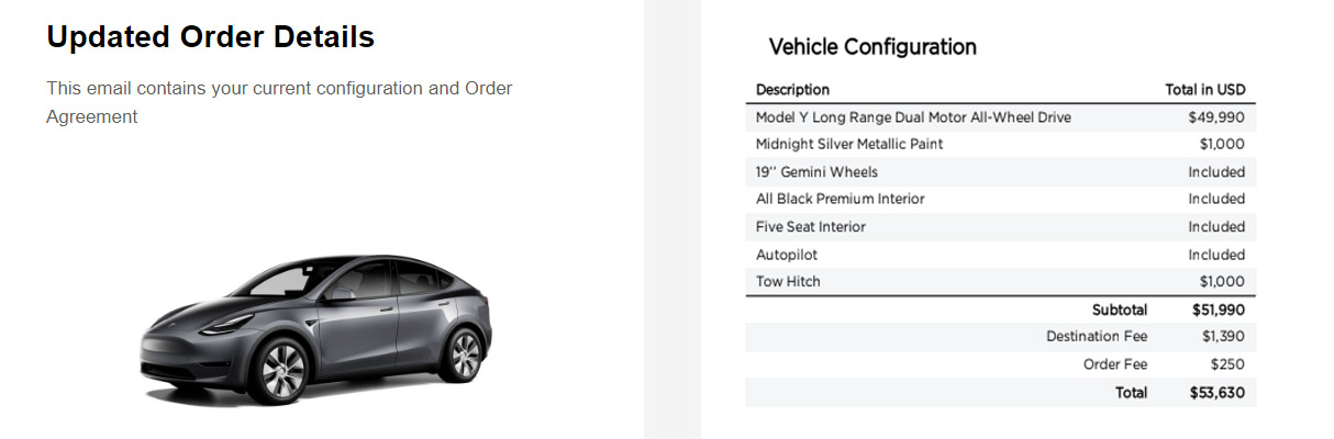 * Total cost of this Tesla: