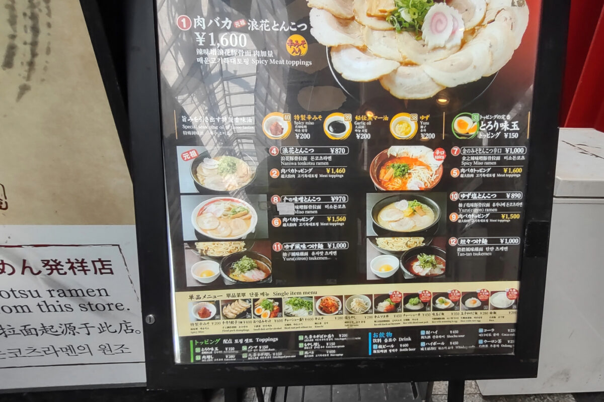 The only problem with trying to get a meal like this, is ordering. Luckily, the one noodle place we used for breakfast in Osaka, twice, had friendly staff who came outside to help us order when they saw us struggling.