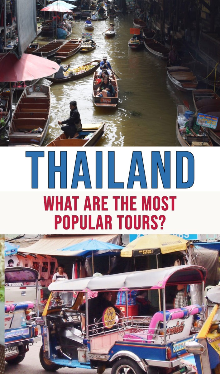 The most popular tour in Thailand, is a floating market tour from Bangkok. This one. This full-day trip is cheap (under $50) and easy. It includes a longtail boat ride and a trip to Maeklong railway market. We highly recommend Maeklong. I can see why this tour is so popular.