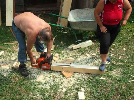 Our neighbours built us two beds yesterday using wood from the barn, a chainsaw and an axe. They’re the most solid beds I’ve ever slept on and smell of fresh pine resin.
